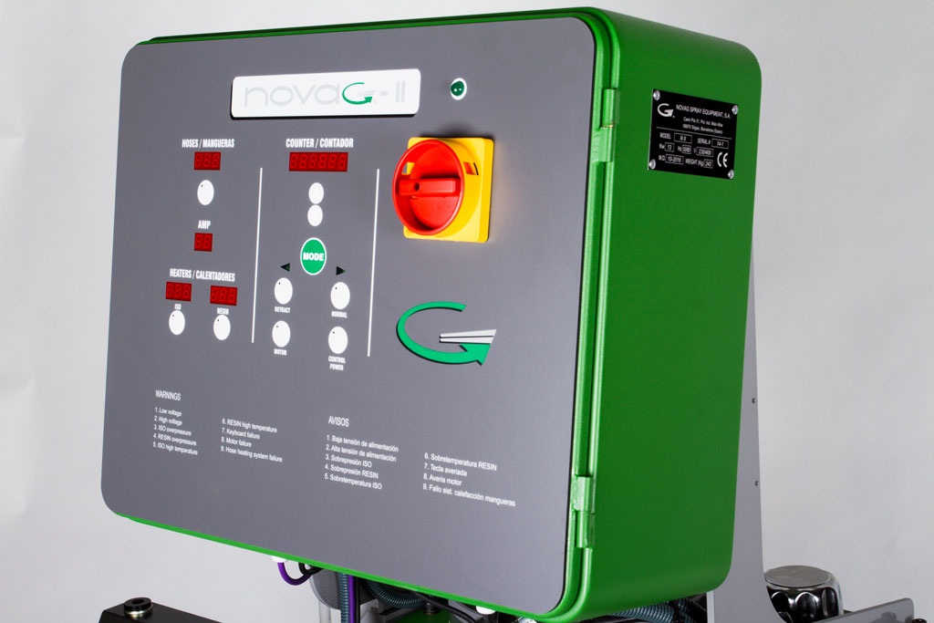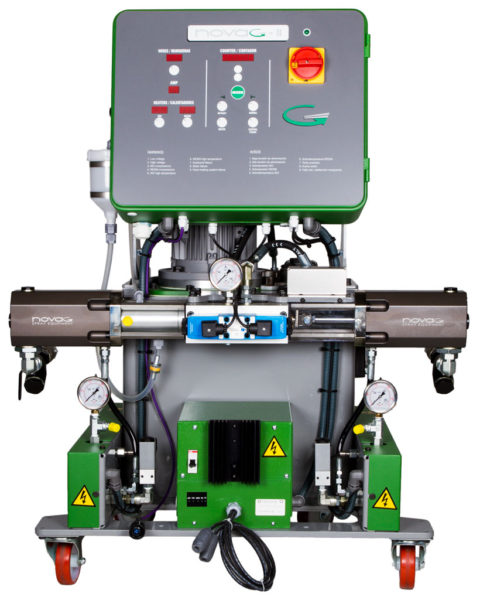 The new NOVAG II hydraulically driven proportioning unit has been designed and manufactured to fulfil the most demanding requirements of industrial foam in place applications of two component systems requiring high dosing precision to assure the best mixing quality of the chemical components. Its particular configuration facilitates easy access to all its components, simplifies the control functions and significantly reduces maintenance time.